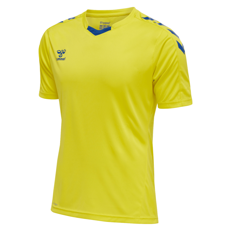Maillot 100% polyester Interlock. Col V + empiècement PES avec finition ''passepoil''. Coupe classique. Logo Hummel et chevrons imprimés. Tissu traitement ''BEECOOL'' pour + de confort.
