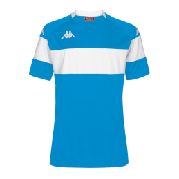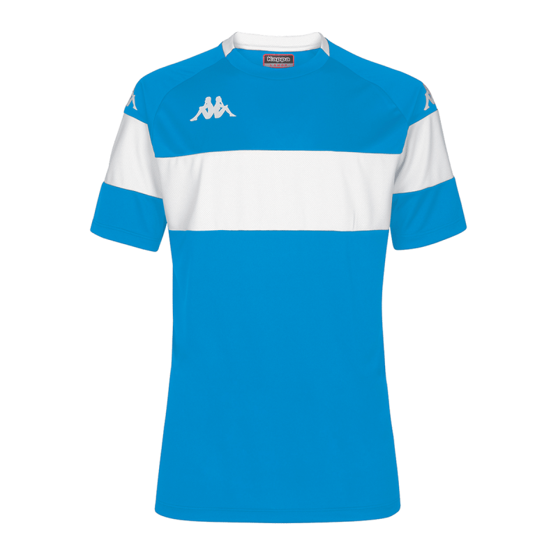 Maillot de match et d'entraînement homme 100% polyester, SLIM FIT, matière traitée spécifiquement pour évacuer la transpiration, manches courtes, col rond bande colorée sur le devant du maillot et sur les manches. Omini sur la poitrine et les manches.