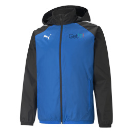 Maillot de foot 100% polyester. Col rond avec coupe classique. Bandes ajourées noires et blanches en bout de manches.